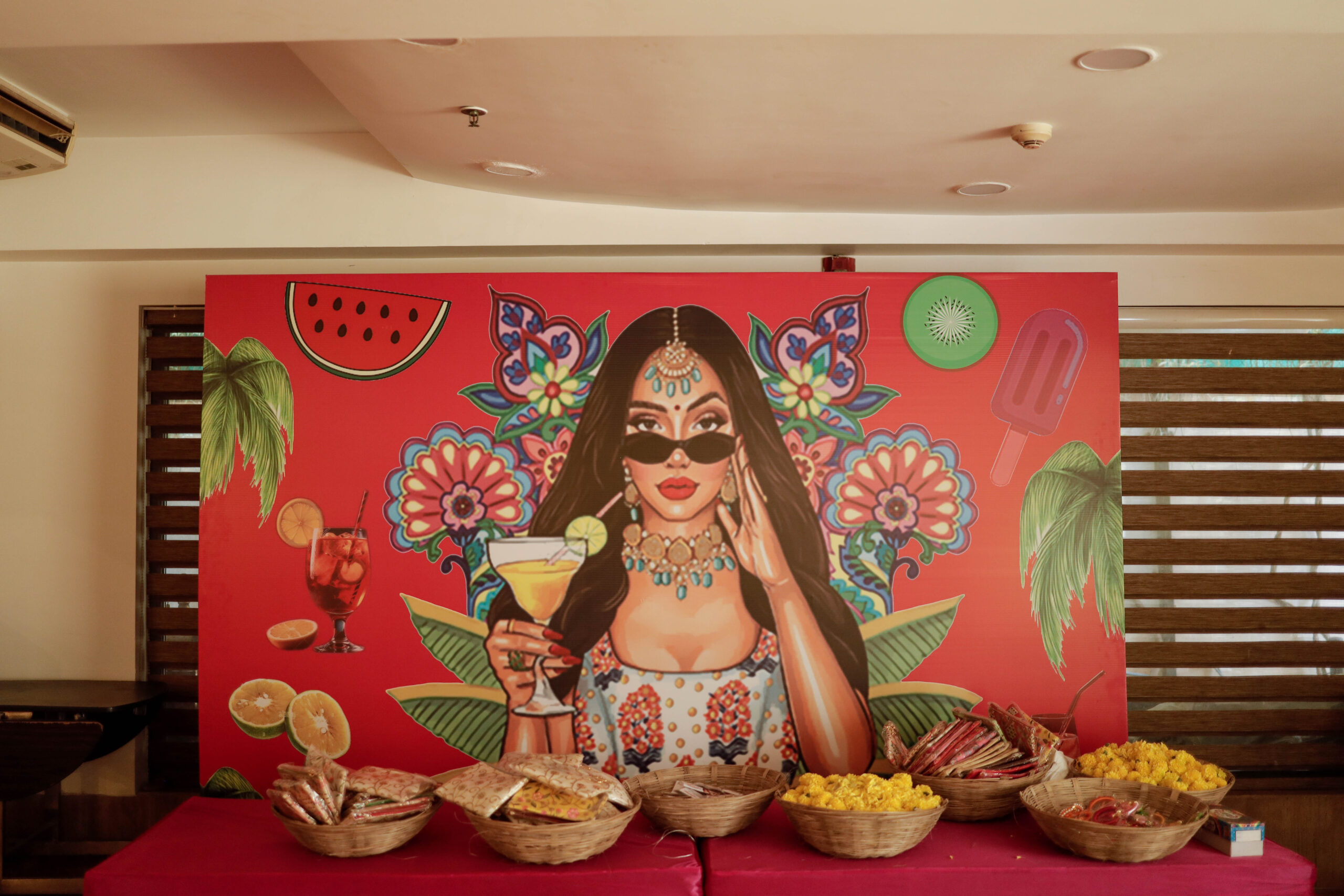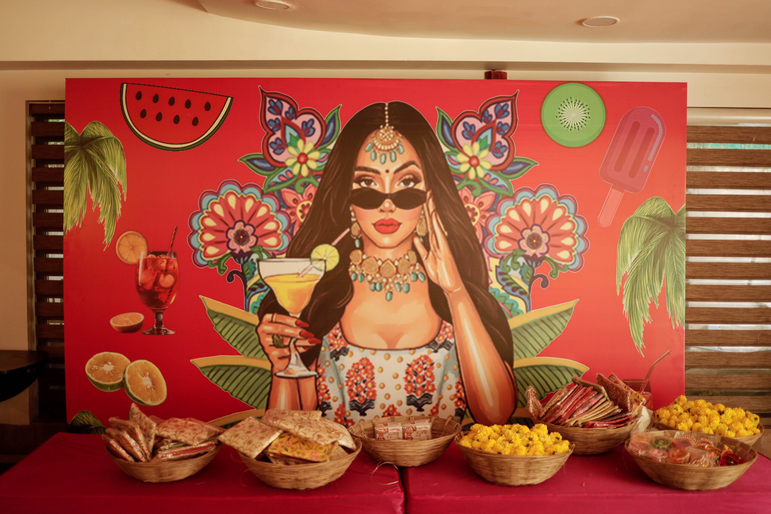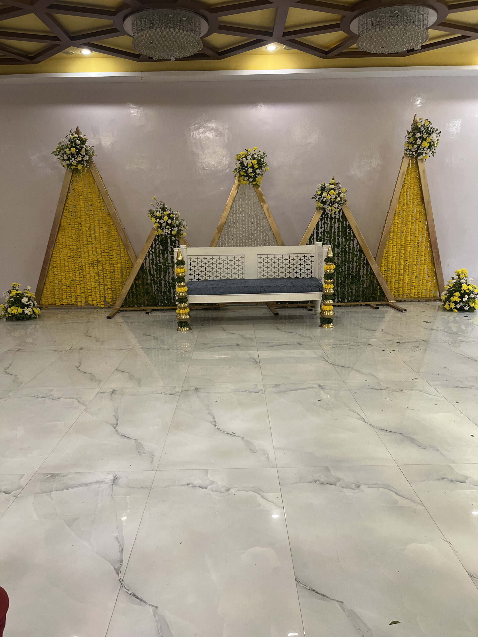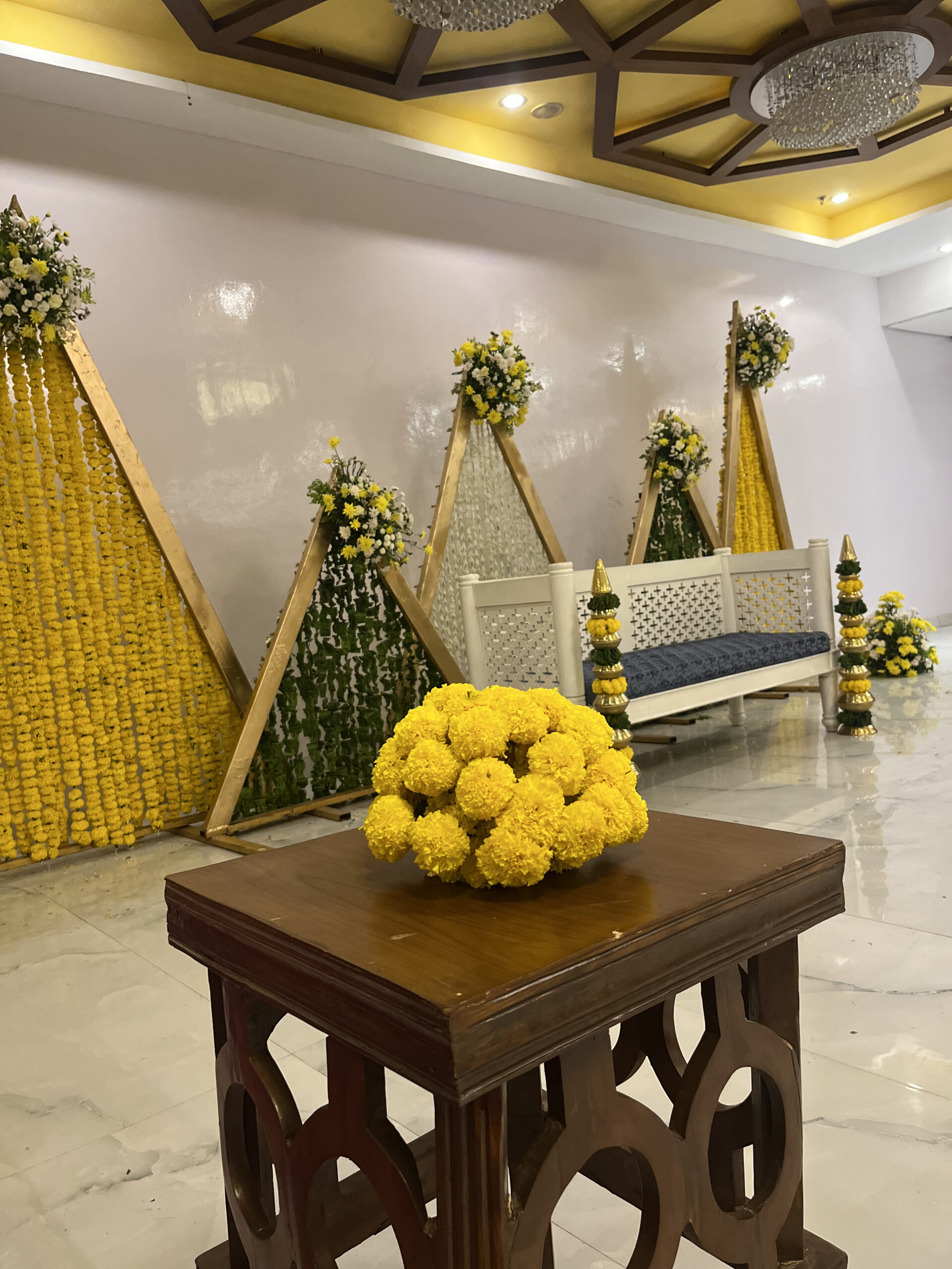 Colourful drapes, ethnic elements, floral accents and thematic seating brought this Mehndi to life. Our team executed everything from décor to guest coordination.