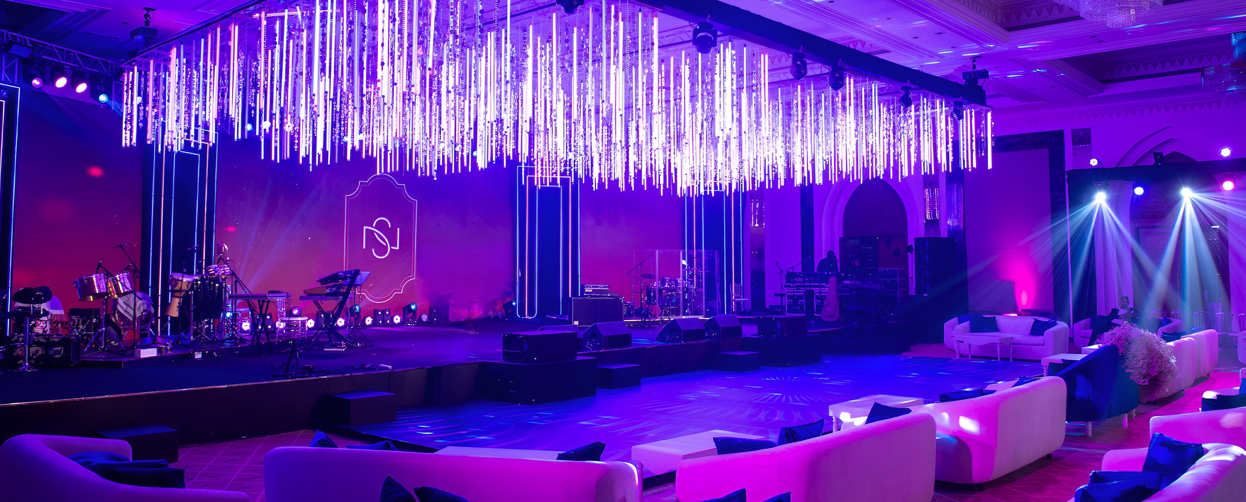 LED stage, truss lighting, choreographer coordination, artist management & family entries — planned and executed with precision for a high-energy Sangeet evening.